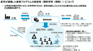 政府が全国の国公私立大学に設置を促している「契約学科」。産業界で活躍できる人材を育成するため、産学が協力して設置・運営する学位の授与を行う教育プログラムで、企業と大学が連携した実践したカリキュラムを設計する。モデル事例の […]